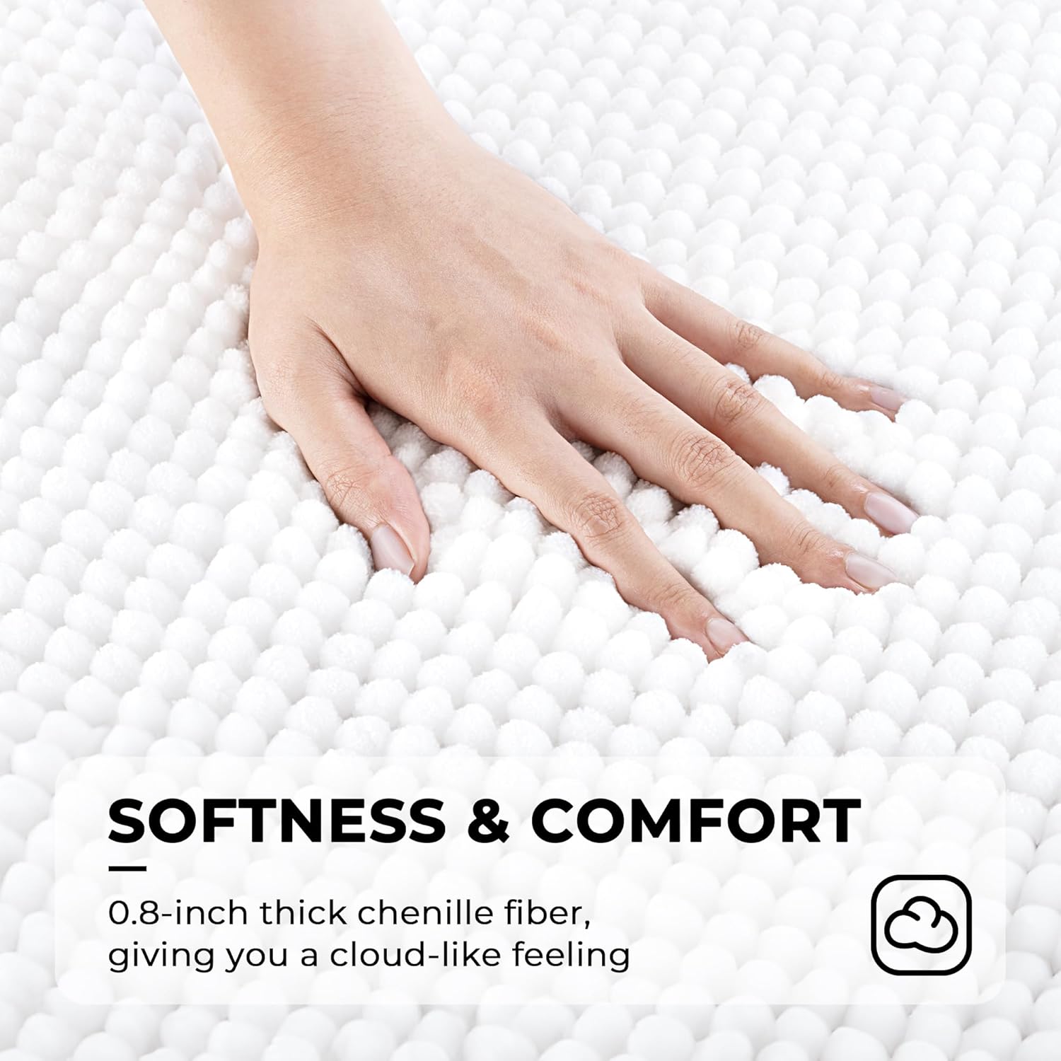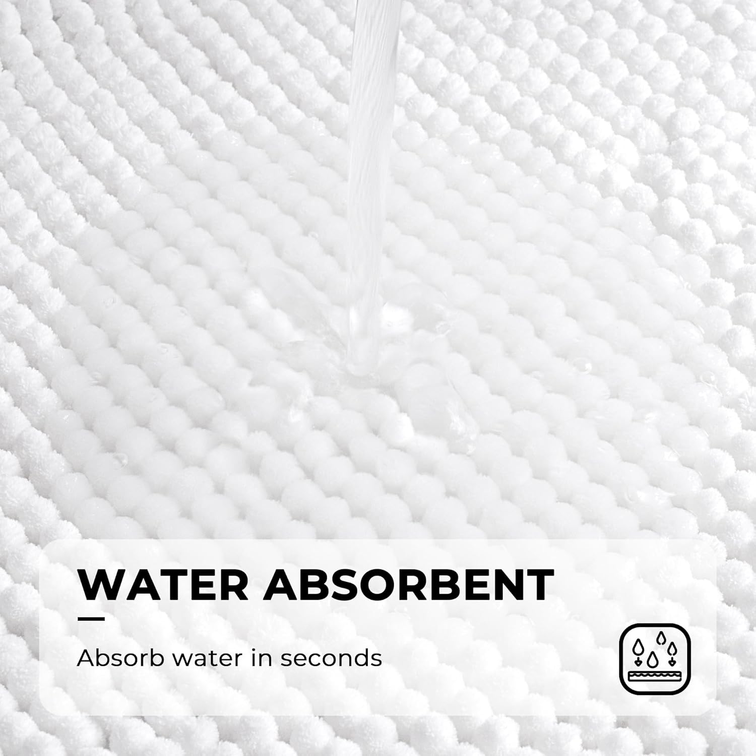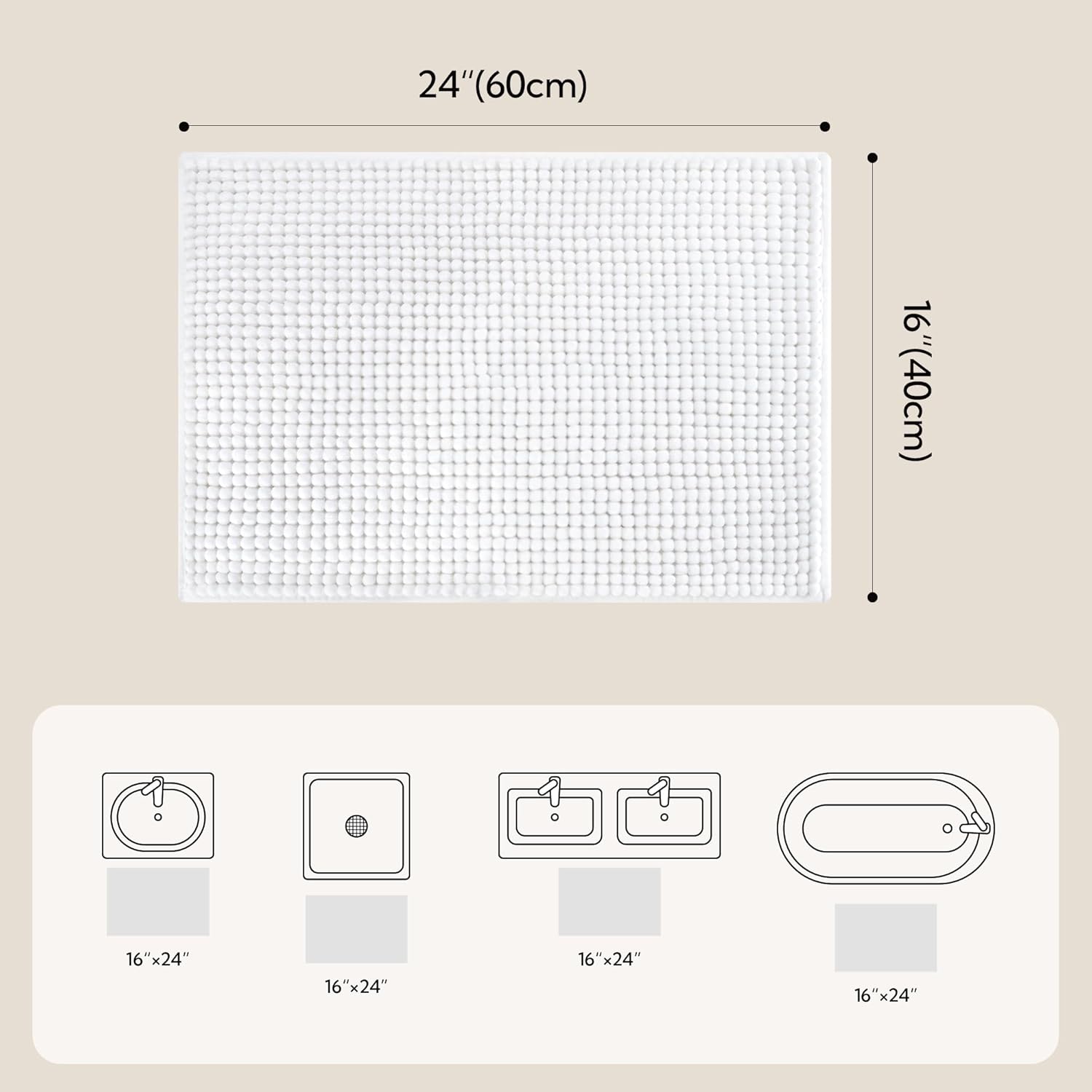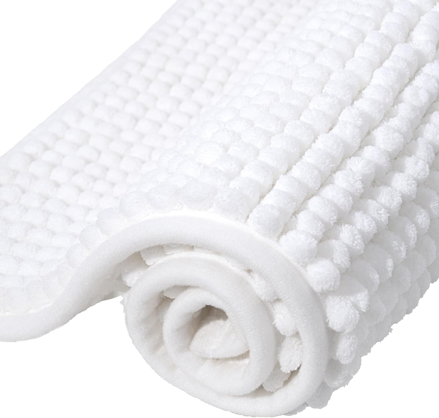 GRANNY SAYS Chenille Bathroom Rugs Non Slip Washable, Soft White Bath Mats for Bathroom, 16″ x 24″, Super Absorbent Bath Mat Small Bathroom Floor Mat, Tub and Shower