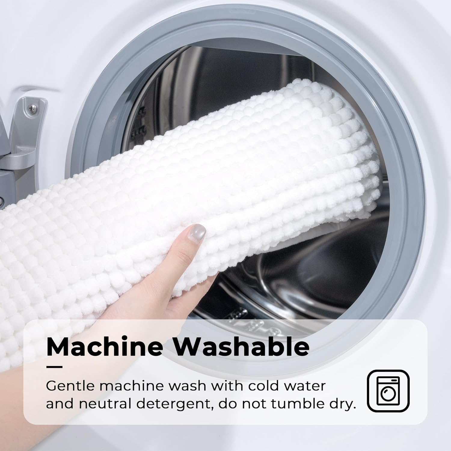 What sets this bath mat apart is its non-slip feature, providing you with added safety and stability when stepping out of the shower or bath. No more worrying about slipping on wet floors! Additionally, the super absorbent chenille material quickly soaks up moisture, keeping your bathroom floor dry and clean.