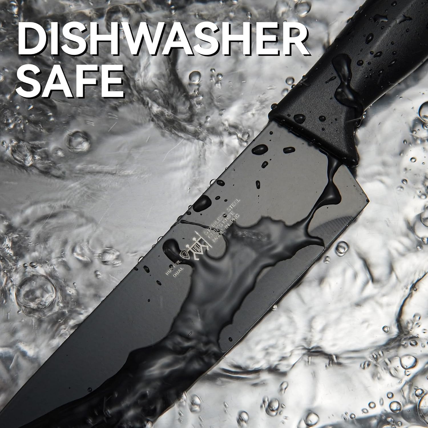 Cleanup is a breeze with this knife set, as all knives are dishwasher safe, making maintenance a simple and hassle-free task.