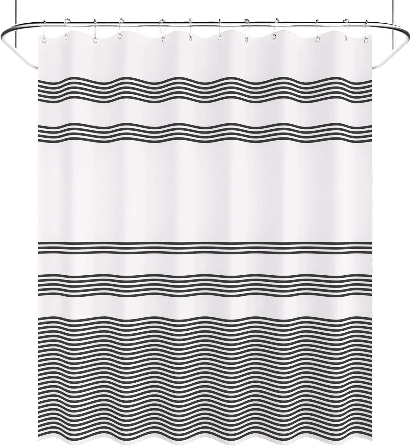 Shower Curtain, Washable Cloth Black Shower Curtain Sets with 12 Shower Curtain Hooks, Fabric Rustic Black and White Striped Shower Curtain, Farmhouse Bathroom Shower Curtain, 72×72 Inches